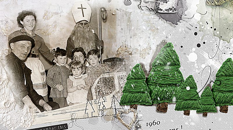 - Puis le jour 12 :Challenge Heritage – Scrapper une ancienne photo, un Noël d’antan ! Me voici donc ici au milieu de la photo, en 1960 : j’ai 4 ans !