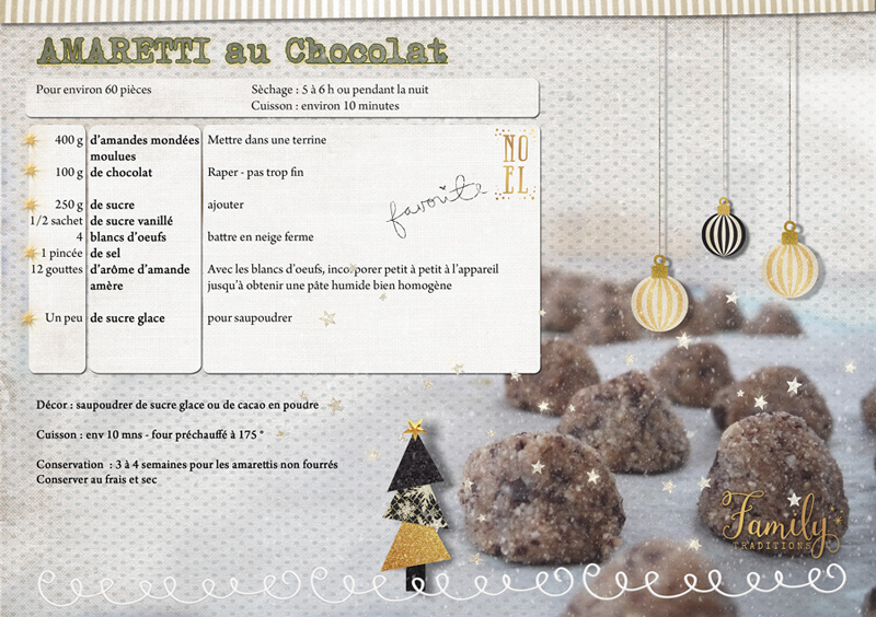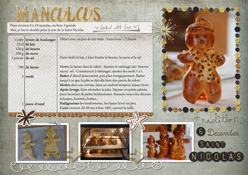- Un jour, il fallait scrapper une recette, j’ai réutilisé ces pages faites l’année dernière, les recettes faisant partie de mes « Bredala » de Noël habituels et obligatoires !