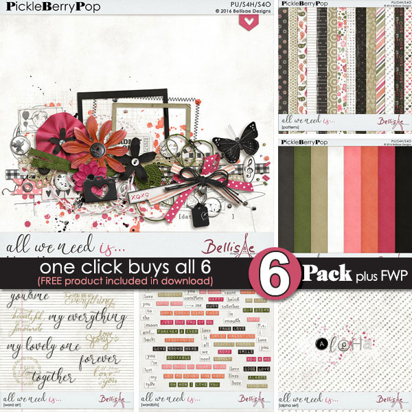 Le « February Pickle Barrel » est ouvert @ PBP etBellisae nous y présente sa toute nouvelle collection, ALL WE NEED IS… placée, vous l’aurez deviné, sous le signe de…..l’amour au sens large ! Elle vous permettra de scrapper toutes les photos de ceux qui sont chers à votre coeur ! Cette Collection est magnifique, et universelle …. j’aime particulièrement tous les papiers « B&W papers » pour scrapper des pages monochromes