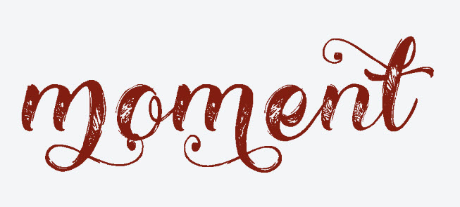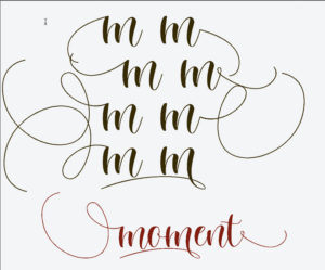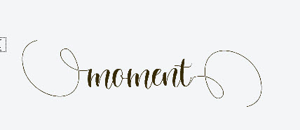 Il faut donc : non attendons ! faisons les choses dans l’ordre : j’écris, dans mon document Photoshop le même mot que tout à l’heure « moment », dans la police Valentine Agnès, ensuite je regarde si je trouve un autre m minuscule, avec un swirl. Je le sélectionne dans NexusFont, je le copie avec CTRL-C et je viens remplacer ce caractère dans le mot dans Photoshop et idem pour le t, caractère de fin de mon mot ! voici le résultat en image :