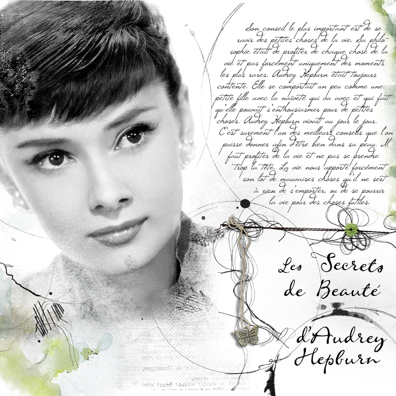 J’ai toujours eu un faible pour cette actrice. Ces grands yeux sombres ? Son visage juvénile. Et je suis tombée sur un petit résumé de sa philosophie de vie. J’en ai donc profité pour en faire le sujet d’une page. Surtout que l’inspiration était très difficile, il s’agissait de lifter ma propre page sur Claudio Capéo, qui avait été retenue pour le Anna Lift de la semaine ! Se lifter soi-même … hum … en fait j’ai surtout retenu le Noir et blanc, puis, j’ai suivi mon instinct