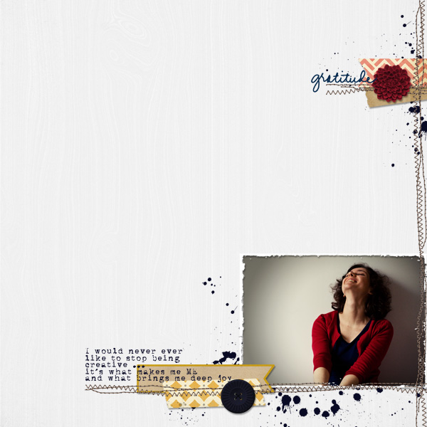 Je pense que cette page va être intéressante à lifter, elle laisse la part belle à la photo, qui pourra être mise très joliment en valeur ! Entourée de petits éléments discrets, mais très importants.