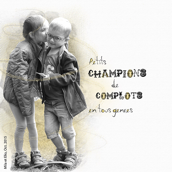 On retrouve souvent cette idée dans nos pages de scrap : du Noir & blanc avec une touche de couleur … c’est un grand classique dans notre terrain de jeu de scrap digital !