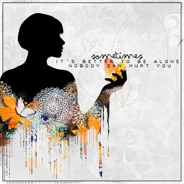 Quand à la mienne : j’ai utilisé le même genre de « masque avec coulures » que Ona – masques qui faisait partie de la collection Sometimes »- , j’ai remis en couleur le parapluie, et animé ma page avec quelques spots de couleurs donnés par des Magiclights, et quelques coups de brush…. finalement c’est pas bien compliqué !