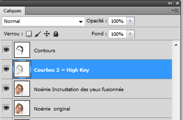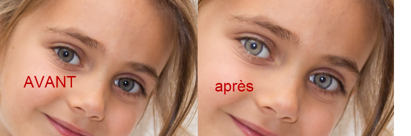 Sachant que nous voulons donner de l’importance aux yeux(et que, tiens donc, Noémie à des yeux magnifiques) , j’ai d’abord fais subir une petite amélioration à ses yeux, justement . J’ai rattrapé un peu l’éclairage sur ses yeux.