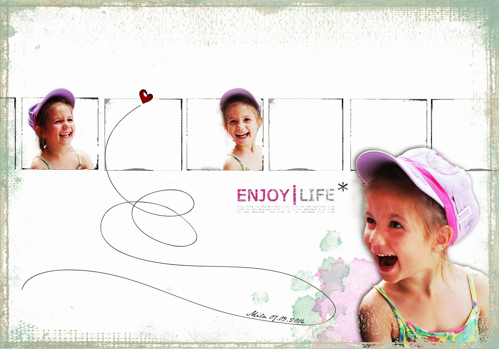 Non classé Pages C&S 21 décembre 2014 clindoeil 2518 Views 2 Commentaires Page Scrap C & S Page Scrap C & S crédits : Papiers, Brushs Erica ZwartInspiration : Lift d’une page de Faby sur PBS qui était elle même un lift de Nina Le style minimaliste de ces pages fait bien ressortir l’essentiel : les expressions joyeuses, une joie de vivre contagieuse … I love you so much ! !