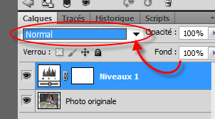 Pour l’instant notre calque est en  « mode de fusion Normal »