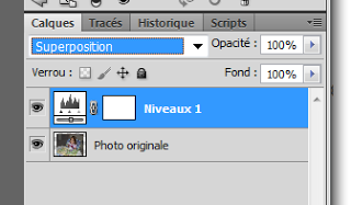 Nous passons par le menu « Calque »  pour ajouter un calque de réglage de niveaux