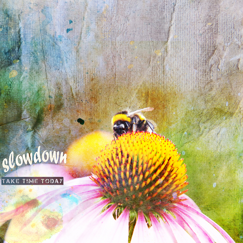 Pour ce challenge sur Oscraps, il fallait trouver une photo « de quelque chose qui vole » ! Vraiment très facile et large comme challenge. Surtout pour moi qui aime photographier toutes les petites bébêtes de mon jardin. J’ai choisi une abeille goulue qui se gavait sur une fleur !