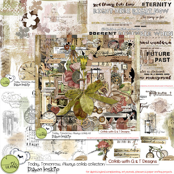 Une nouvelle collaboration entre Dawn Inskip et G & T Designs ! Le sujet est la vie quotidienne, le temps qui passe, avec ses bons moments. un kit à employer et ré-employer au fil des ans.