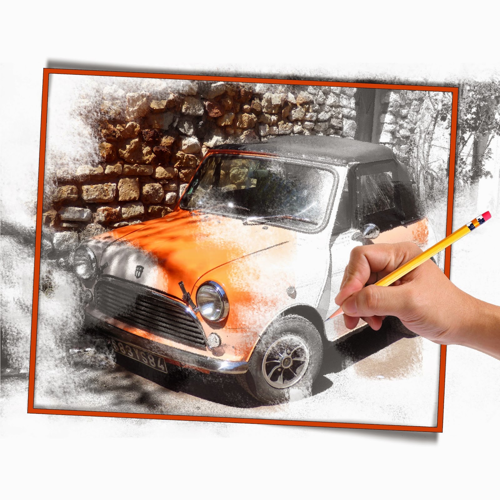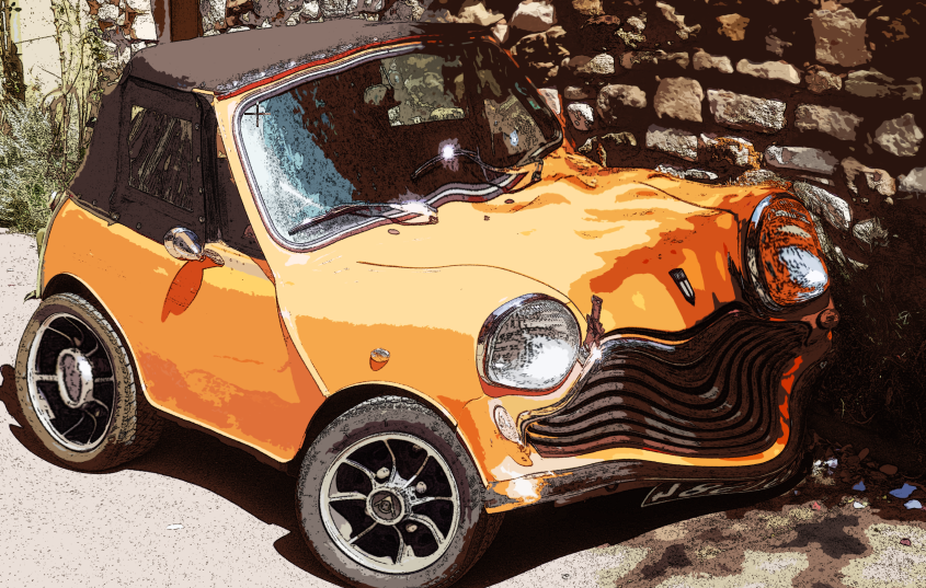 Me revoilà encore avec ma photo de cette petite voiture marrante et des effets de sketch … Aujourd’hui nous allons essayer l’effet Bande dessinée