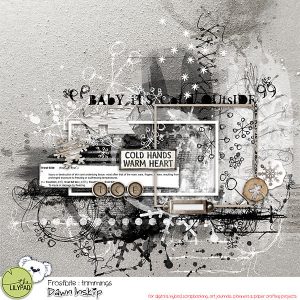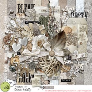 Il s’appelle FrostBite, ce qui veut dire « morsure du froid » ! Il contient des éléments pour des pages givrées , j’aime les tons neutres crème, marrons et blancs. Un kit d’hiver, certes, de part ces magnifiques éléments blancs, mais les papiers cartonnés sont de pures merveilles à utiliser également pour tous les styles et pendant toute l’année !